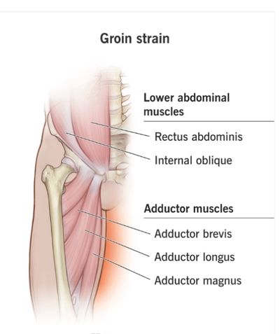 The groin muscles are a group of muscles that connect the lower abdomen to the thighs. A groin strain involves the lower abdominal muscles, iliopsoas muscles (muscles that connect your spine to your hips and legs), and/or your adductor muscles (muscles in your hips and thighs). There are 3 grades, 1 (mild), 2 (moderate), and 3 (severe).