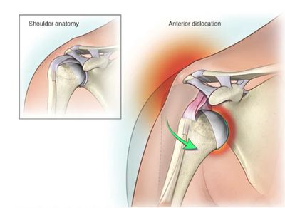 A dislocation occurs when something forces the bones within the shoulder joint out of place, causing the ball and socket connection to be separated, damaging the tissue around the shoulder joint.